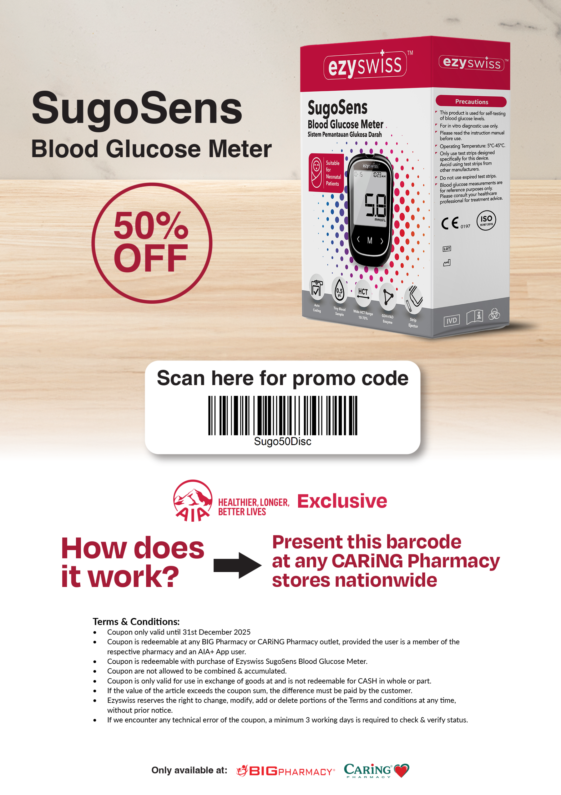 AIA SugoSens Blood Glucose Meter 50% OFF | CARiNG Pharmacy
