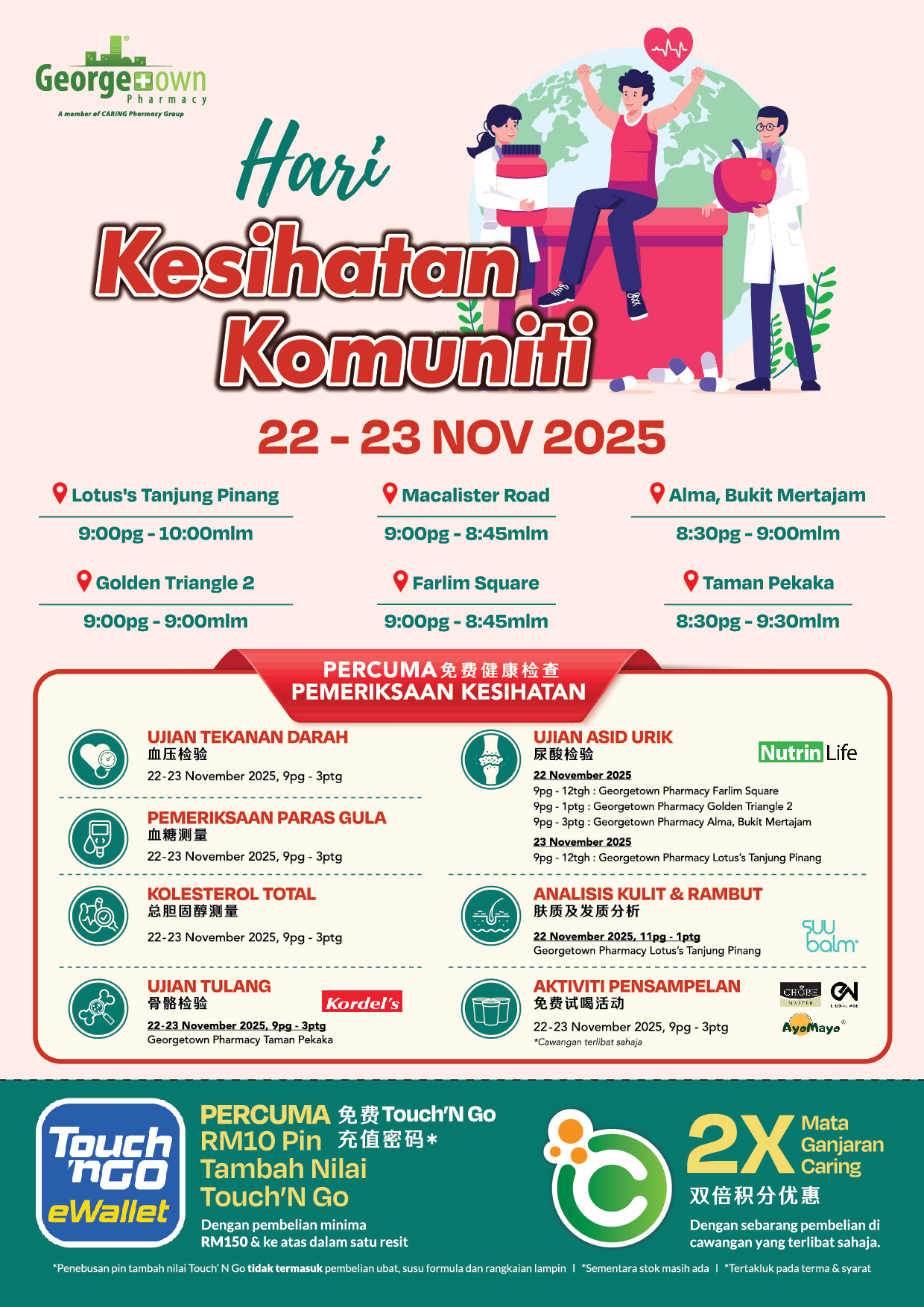 Join us for our Hari Kesihatan Komuniti on 22-23 NOV and enjoy free health screenings and much more!