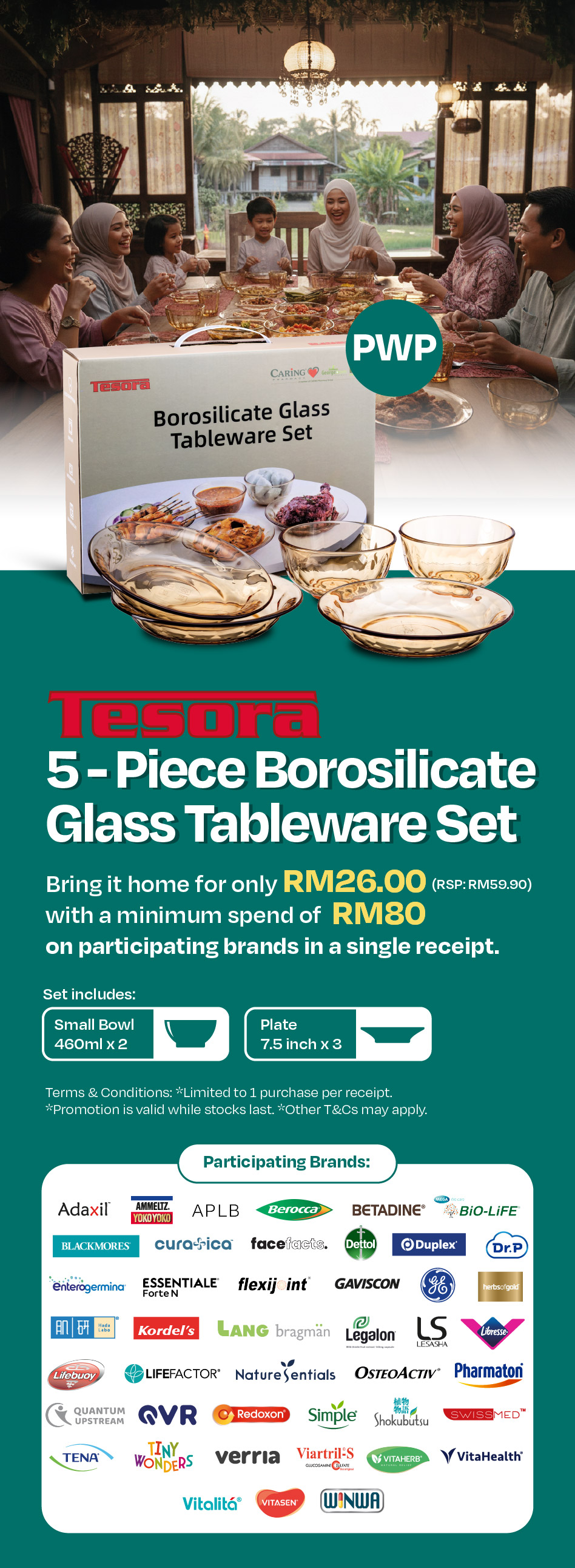 PWP Tesora 5-Piece Borosilicate Glass Tableware Set