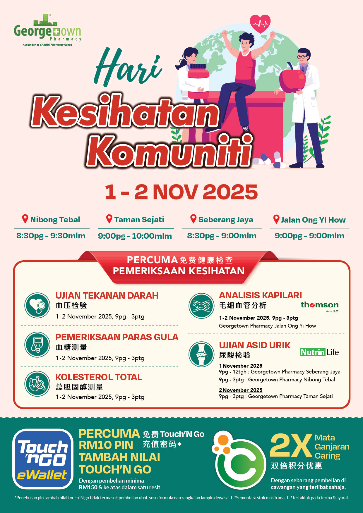 Join us for our Hari Kesihatan Komuniti on 1-2 NOV and enjoy free health screenings and much more!