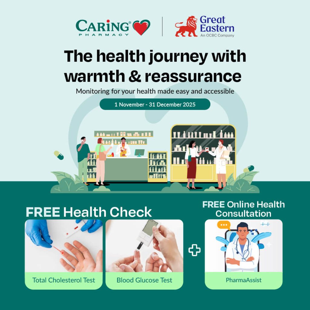 - To redeem the free health check customer MUST BE Great Eastern policy holder & CARiNG Pharmacy Members